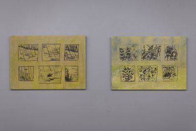 This show is also about drawing, including several conte drawings from landscape, including one of Monet's Japanese footbridge from 1984, anchoring the more recent paintings and drawings which were initially developed for furniture projects. |
